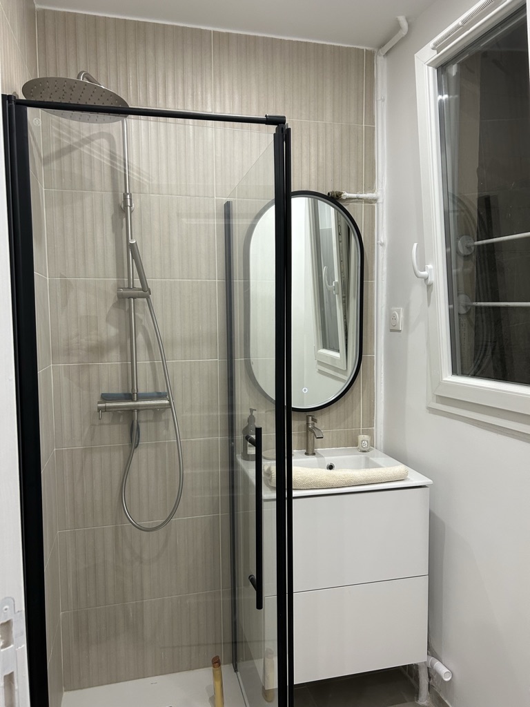 - Une salle de bain raffinée, avec des éléments de qualité et une douche spacieuse, créant un lieu de détente au cœur de l’appartement.